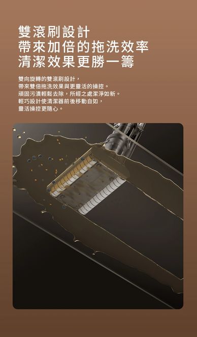雙滾刷雙向旋轉,帶來雙倍拖地動力,更加靈活。頑固污漬可以輕鬆去除,使所到之處更加乾淨。使清潔燈能夠向前和向後移動,並具有額外的靈活性。