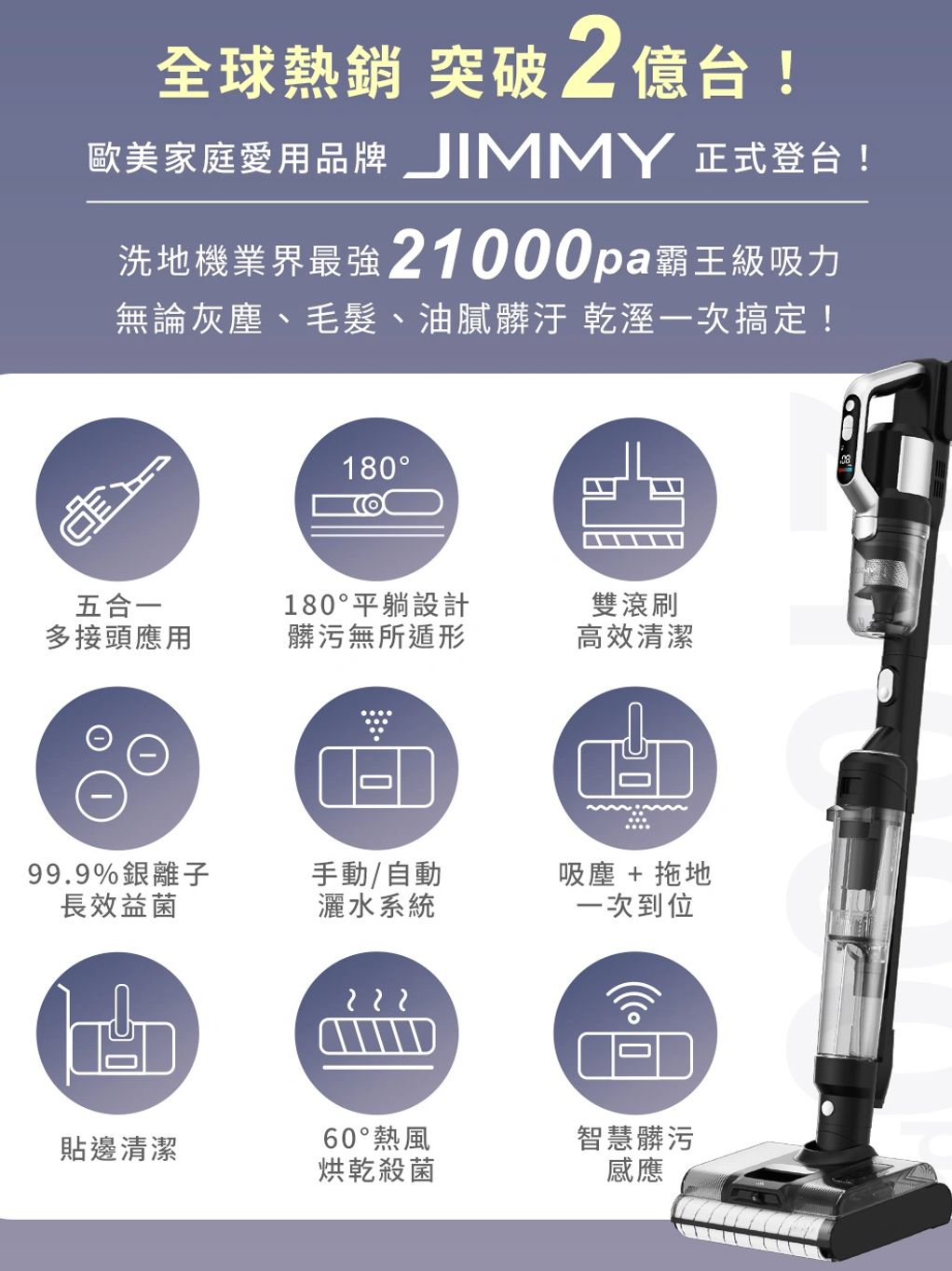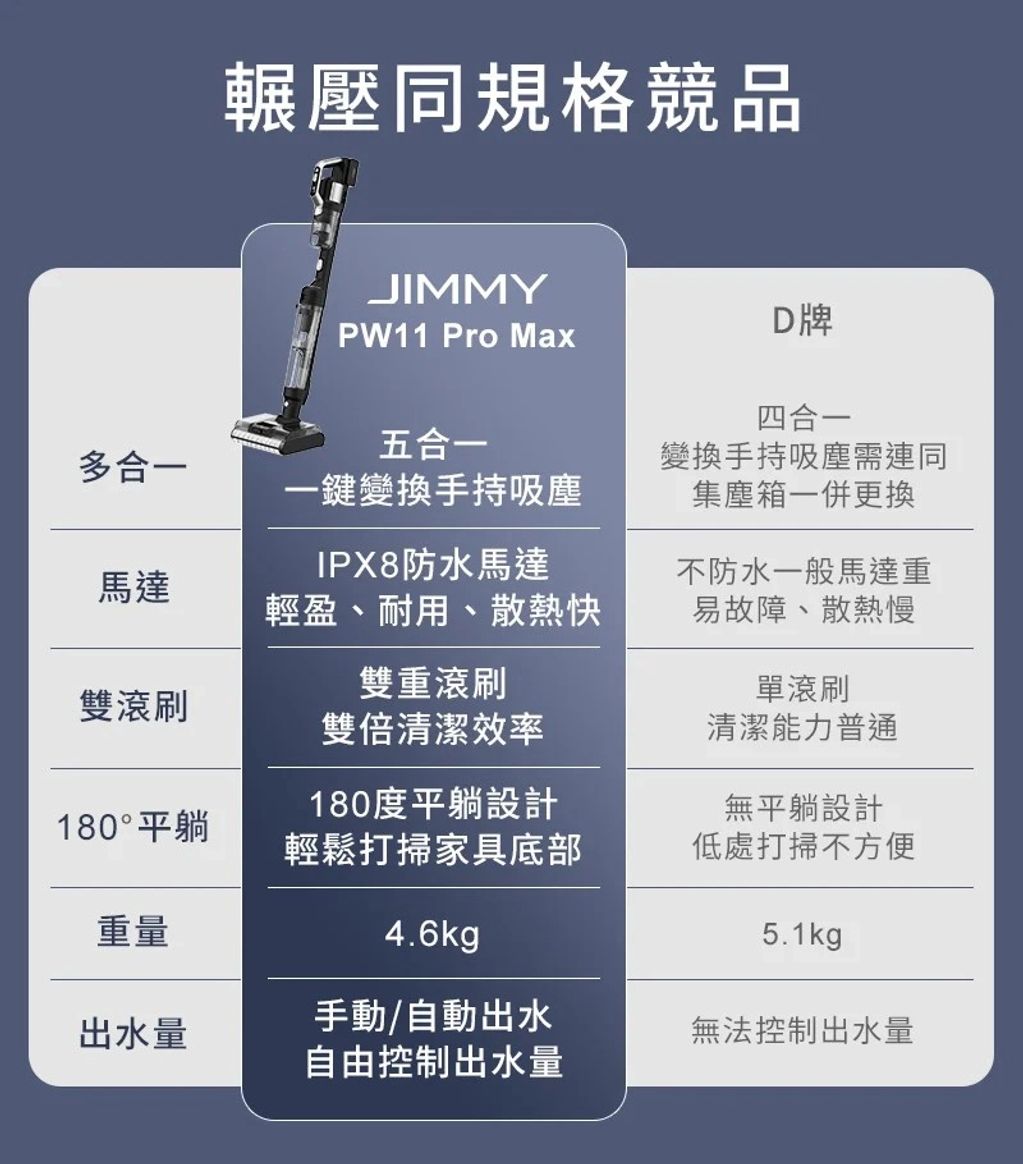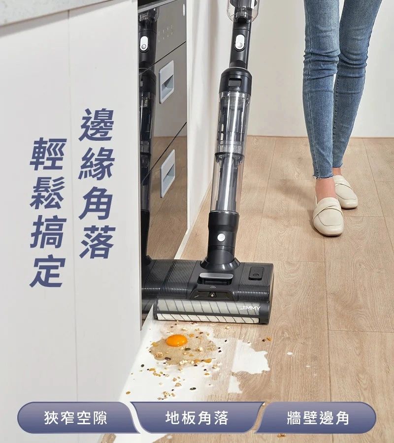 JIMMY PW11 Pro Max配備防倒流裝置,幾乎可180度平放,輕鬆清潔沙發、床、椅子等底部等狹小空間。