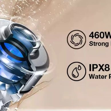 專利*無刷馬達採用輕質鋁鎂合金製成,創造460W強動力,同時也達到IPX8防水等級。可為地板、地毯、床和其他區域提供出色且可靠的清潔性能。